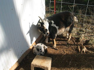 Surprise! Surprise to you and to us, that is. We didn't even know our girl goat was pregnant.